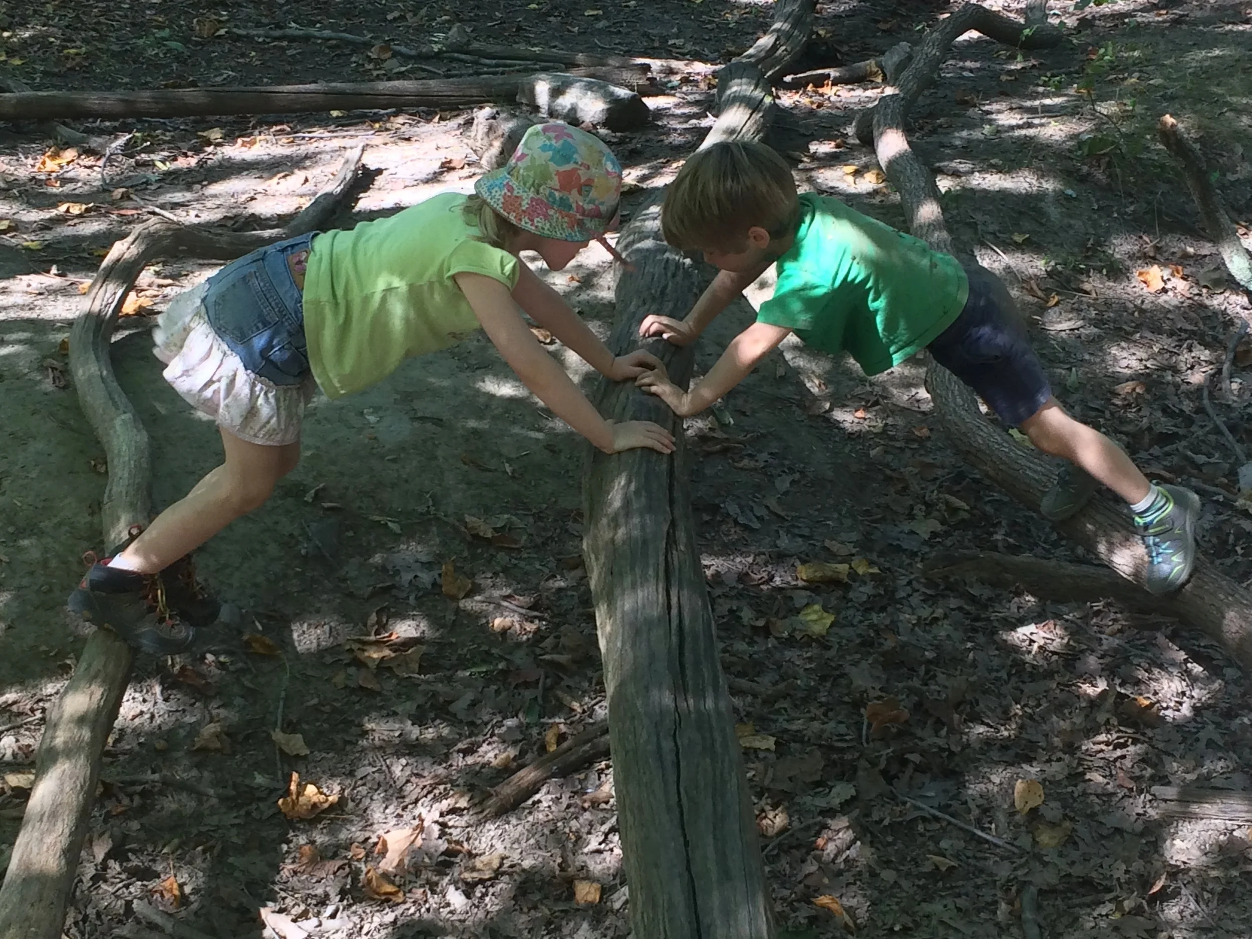 Students find their balance at the Nature Preschool at Schuylkill Center for Environmental Education. Photo courtesy of SCEE.